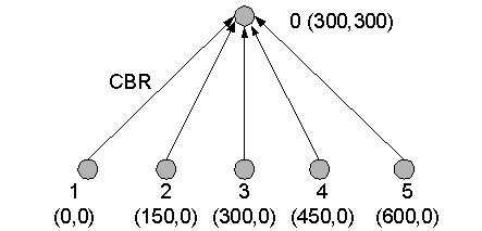 Change the traffic pattern to N single hop sessions. Let ith node be the CBR Client and (i+1)th node be the CBR server as illustrated in the following figure.