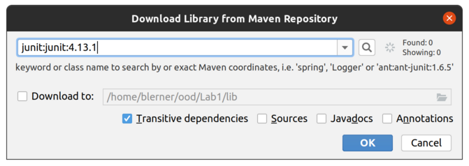make sure to choose a version at least 4.13.1 (which should be the default). Press OK. IntelliJ will now download JUnit4, put it in a folder on your computer and link your project to it.