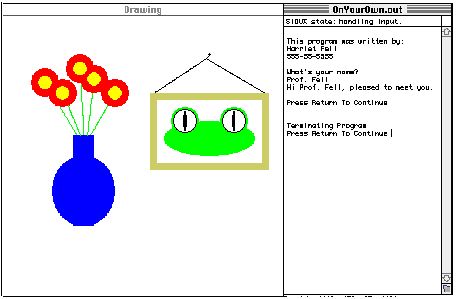 Add two calls to main, BigSquarePair(); // this be the first call PressReturn(); // this will be the last calland run your program again. This time, you should see drawing and text windows.