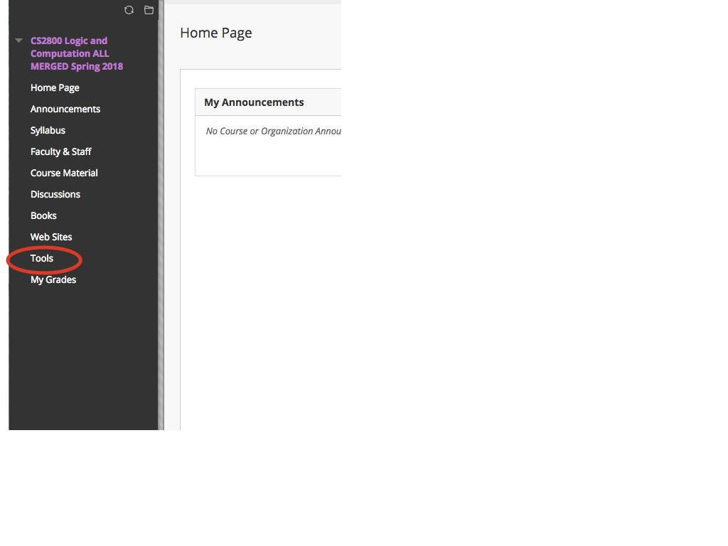 1. Log into the BB, in the Course Menu area, click on the Tools link.