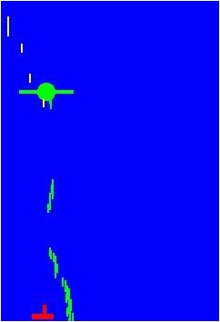 Imagine you have become a game developer and your manager poses the problem of developing the first version of a War-of-the-Worlds game, freely named after H. G. Wells's science fiction novel. The purpose of the game is to prevent a UFO from landing on our world and from destroying the last available weapon. The screen shot on the right illustrates the successful defense of your world. The UFO descends from the sky. As it does, it randomly drops little bombs. If those bombs, hit the last available weapon platform, dubbed AUP, the player loses. The player also loses if the UFO reaches the ground unharmed. | |