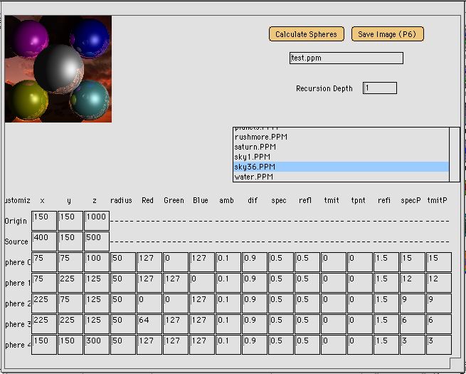 Douglas Lang's Ray Tracer Interface |