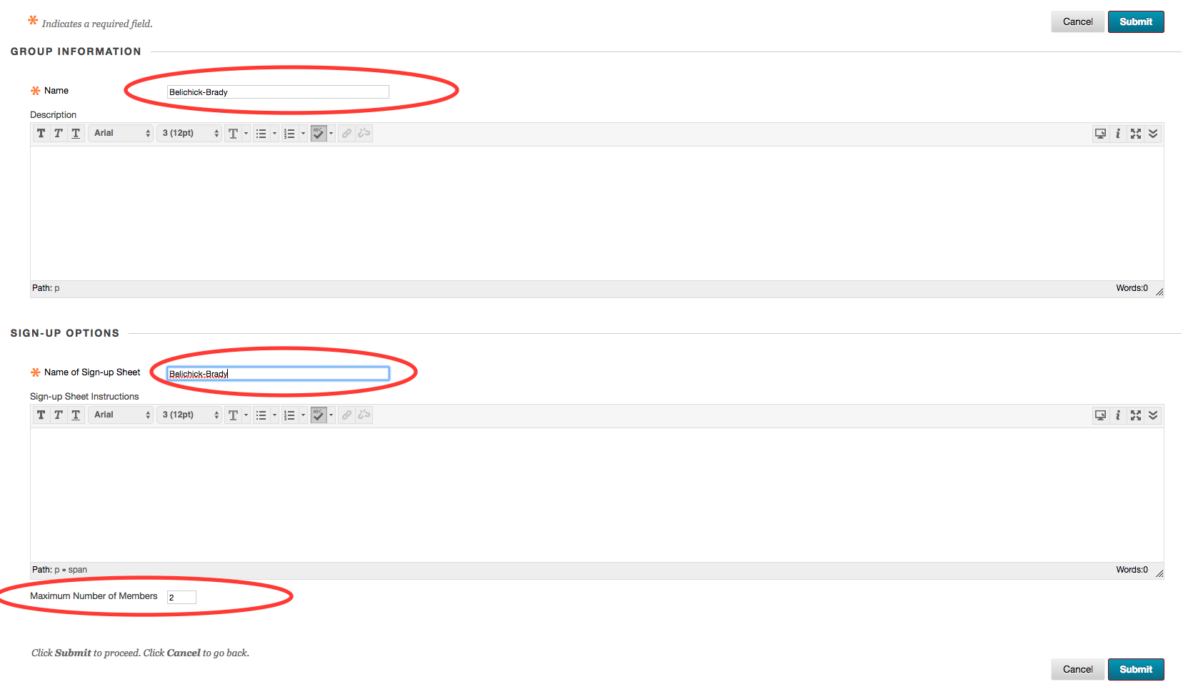 - When created, any member of the group can submit anything to Blackboard, in the name of the group.