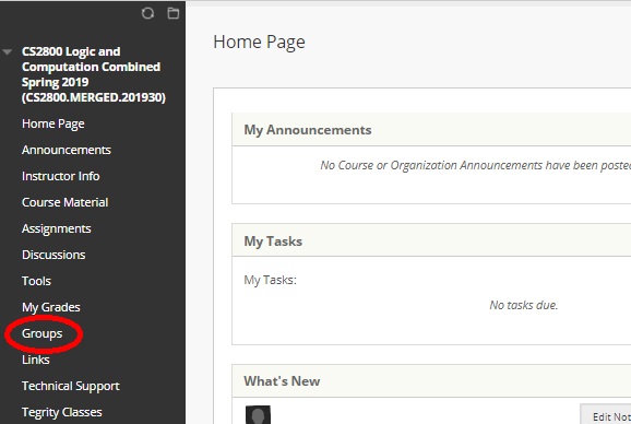 - Log into the BB, in the Course Menu area, click on the Groups