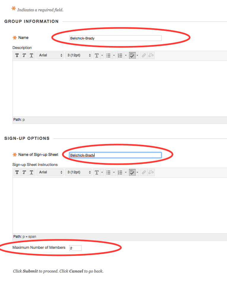 - When created, any member of the group can submit anything to Blackboard, in the name of the group.